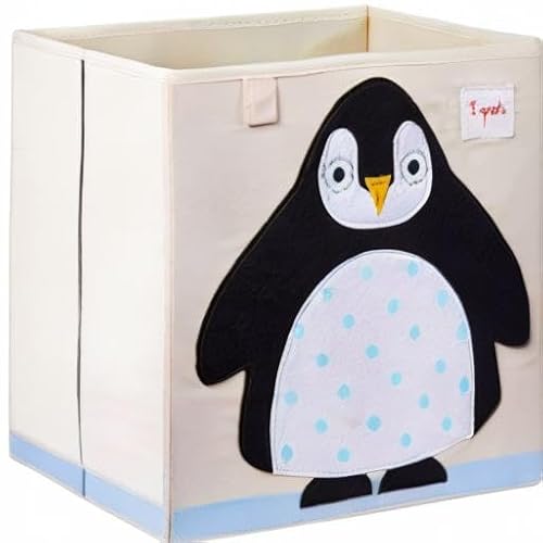 3 Sprouts – Caja Almacenaje Infantil – Caja Juguetes Almacenaje Niños – Cajas Ordenación y Guardar Juguetes – Almacenaje Juguetes Infantil – Caja para Juguetes – Pingüino