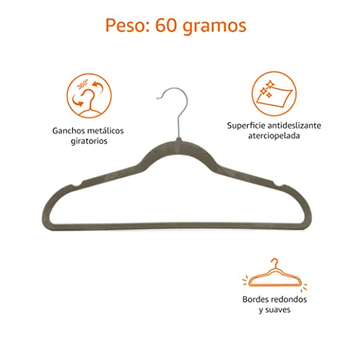 - Superficie de terciopelo gris con muescas antideslizantes en las hombreras para evitar que la ropa se escurra.