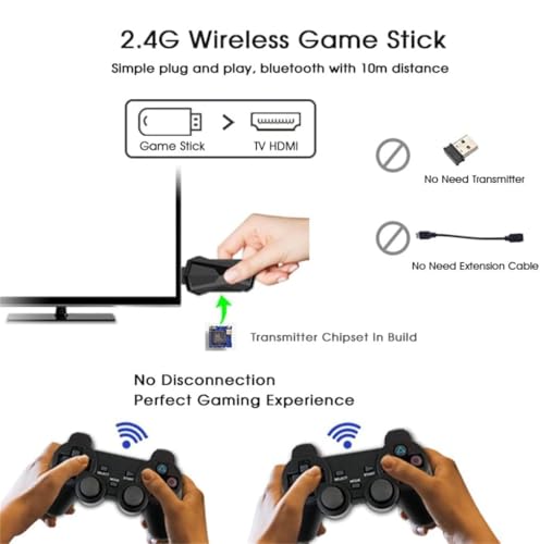 - 2 Controladores — Nuestra consola mini est? equipada con dos controladores inal?mbricos 2.4G, que ofrecen una respuesta r?pida y una vibraci?n potente gracias al motor de vibraci?n, brind?ndote una experiencia de juego m?s emocionante e interesante. ?Es ideal para competir con tus amigos y familiares!