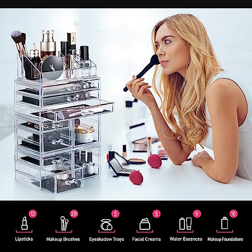 - Almacenamiento de gran capacidad: el organizador de maquillaje incluye doce compartimentos para pintalabios en la bandeja superior y nueve cajones de diferentes tama?os; perfecto para pintalabios, sombra de ojos y otros cosm?ticos