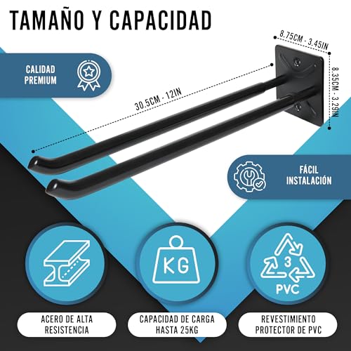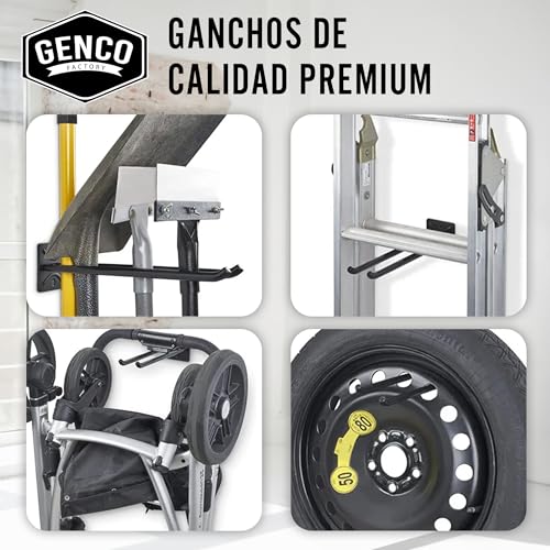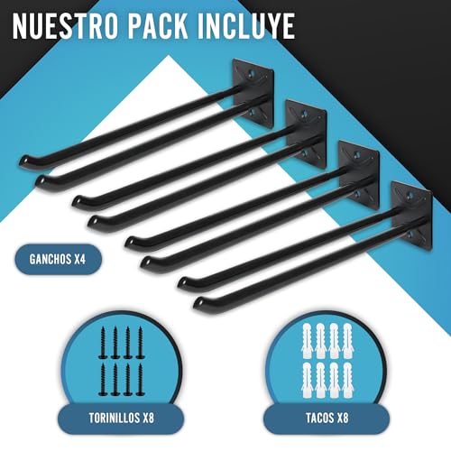 - Genco Gancho pared Factory-Ganchos para colgar-Ganchos Garaje-Soporte multiusos-Gancho para trastero-Colgador pared- Hogar,Trastero,Almacen,Sillas,Herramientas,Bicicletas(PACK 4 UND)