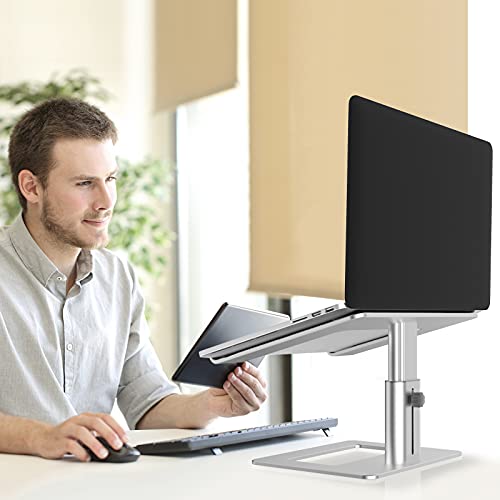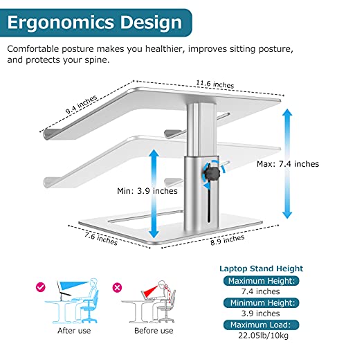 - Ergonomia perfecta: la altura del soporte para MacBook Pro se puede ajustar de 99 mm a 188 mm. Puede ajustarlo al nivel perfecto de los ojos a traves del boton en la parte posterior del soporte. Puede corregir la postura y aliviar el dolor de cuello, hombros y columna vertebral, minimizar la fatiga del cuello en casa y decir adios al dolor de cuello.