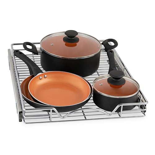 - Alambre de calibre resistente: hecho de metal resistente con un sistema de deslizamiento extra suave para acomodar un gran n?mero de ollas y sartenes. Incluye una garant?a limitada de 5 a?os para garantizar la m?xima calidad.