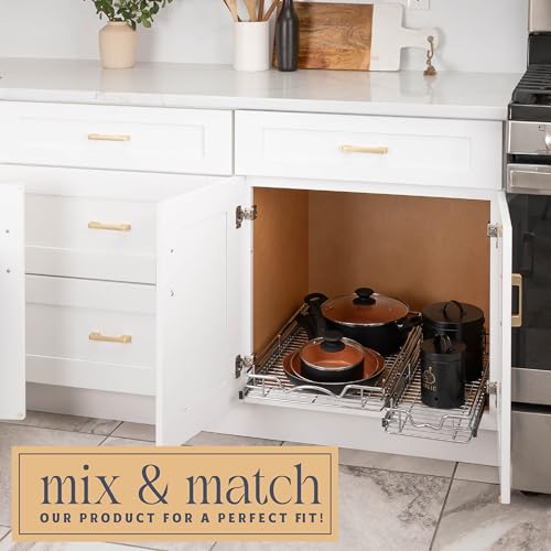 - F?cil de instalar y accesorios incluidos: nuestro organizador de armario extra?ble mide 17 pulgadas de ancho x 21 pulgadas de profundidad x 3.15 pulgadas e incluye sencillas instrucciones paso a paso junto con todos los accesorios necesarios para una f?cil instalaci?n. Se instala con solo unos pocos tornillos simples, y se adapta a aberturas de armario de 18-1/4 pulgadas y m?s grandes