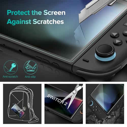 ivoler 4 Piezas Protector Pantalla para Switch Nintendo 2 Model 2025, Incluye Marco de Instalación Fácil, Cristal Vidrio Templado Premium