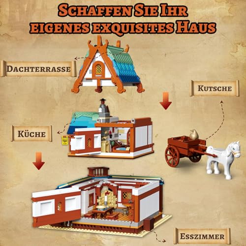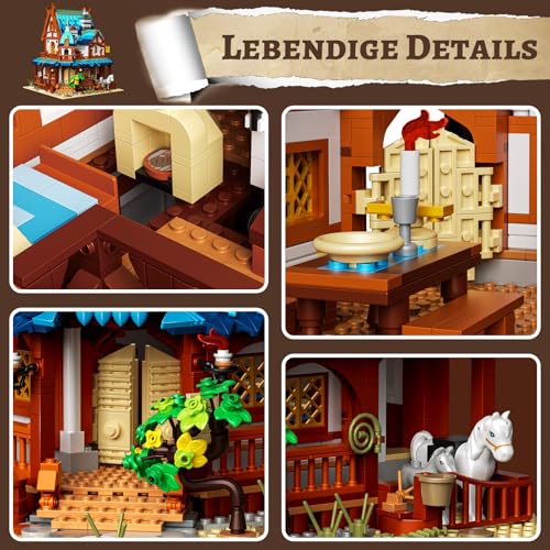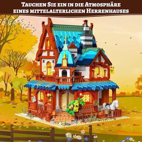 - ?Retro Medieval Theme?Este 1767pcs set de modelos de construccion sigue el modelo de una casa medieval y ofrece una gran cantidad de detalles ocultos detras del estilo vintage: bar y comedor en la planta baja, dormitorio y escritorio en el primer piso, chimeneas en el techo, y cada detalle cobra vida. Estamos deseando que exploren juntos paso a paso y se sumerjan en el mundo medieval.
