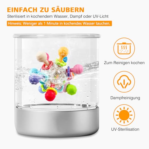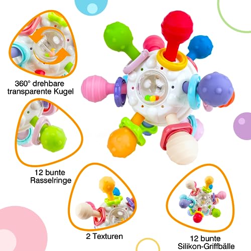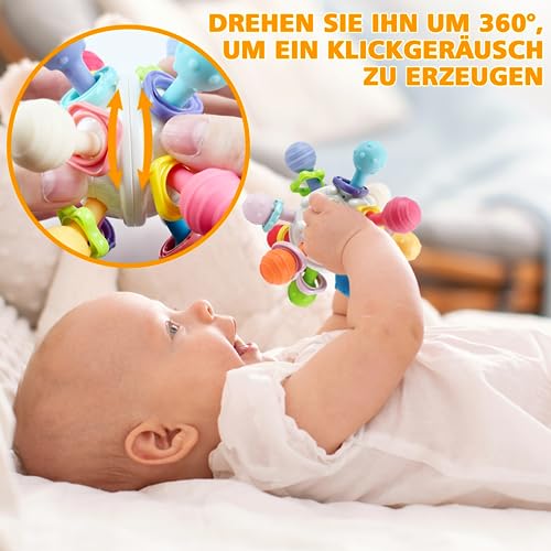 - [ Sensoriales juguetes bebes 6-12 meses ]: M?s que un simple mordedor, tambi?n es un juguete sensorial para beb?s. Hace un sonido al ser torcido o agitado para captar la atenci?n del reci?n nacido, y los colores brillantes ayudan con la estimulaci?n visual y el aprendizaje de colores.
