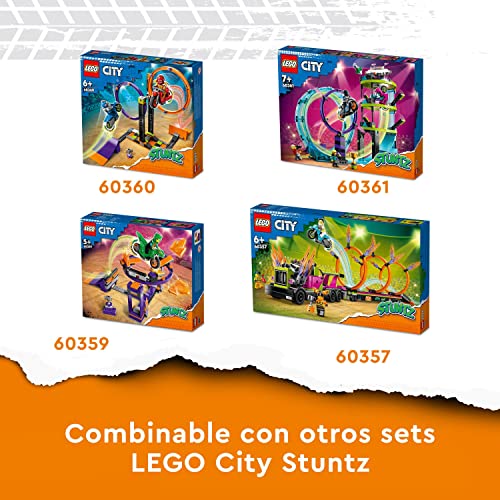 - Combina este set con otros sets de la gama LEGO City Stuntz y crea competiciones acrobaticas aun mas grandes, echa un vistazo al Desafio Acrobatico: Rizo Extremo (60361) o el Desafio Acrobatico: Camion y Anillos de Fuego (60357)