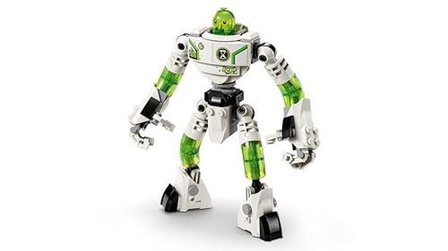 - La figura de LEGO del robot Z-Blob tiene un gran tamano, cuenta con una mochila propulsora con casco y torso, piernas y brazos completamente articulados para sostener dos blasteres de juguete.