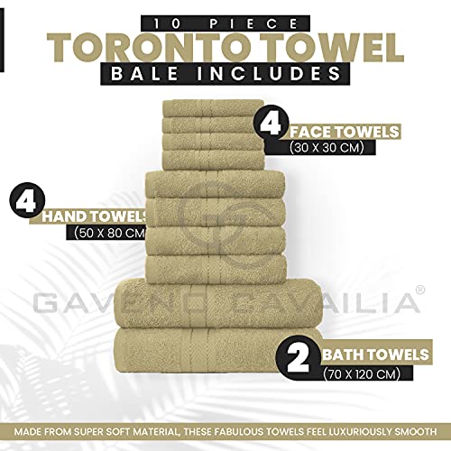 - Juego de toallas de alta calidad de 450 g/m?: este juego de balas moca est? hecho de 100% algod?n, lo que hace que el juego de toallas de alto g/m? sea duradero y duradero. El tama?o del juego de toallas de 10 piezas es de 4 toallas faciales de 30 x 30 cm, 4 toallas de mano de 50 x 80 cm y 2 toallas de ba?o de 70 x 120 cm. Este juego de toallas de 100% algod?n egipcio de 450 g/m? a?adir? un aspecto impresionante a tu ba?o.