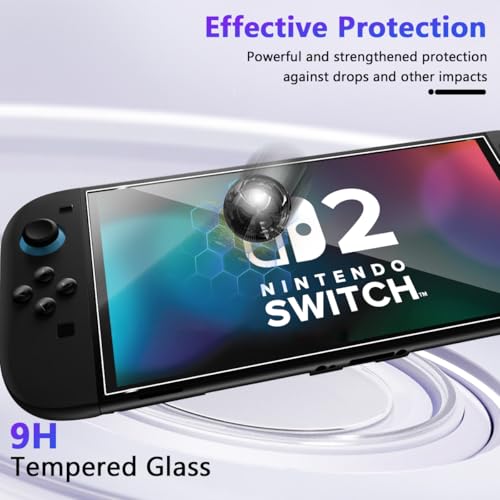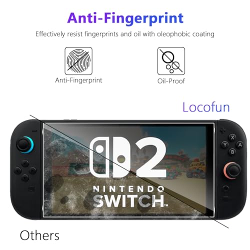 Locofun 2 Piezas Protector de Pantalla para Nintendo Switch 2, Dureza 9H Cristal Vidrio Templado HD Transparente