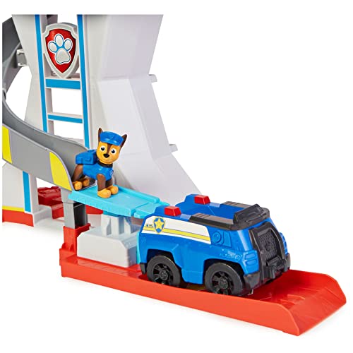 • LANZADOR DE COCHES DE JUGUETES: Cuando llegue el momento de emprender un emocionante rescate, desliza a Chase Patrulla Canina por el tobog?n del Patrulla Canina Centro de Mando para que monte en su coche de polic?a, y a continuaci?n, golpea con fuerza el lanzador de coches de la torre control Patrulla Canina para entrar en acci?n
