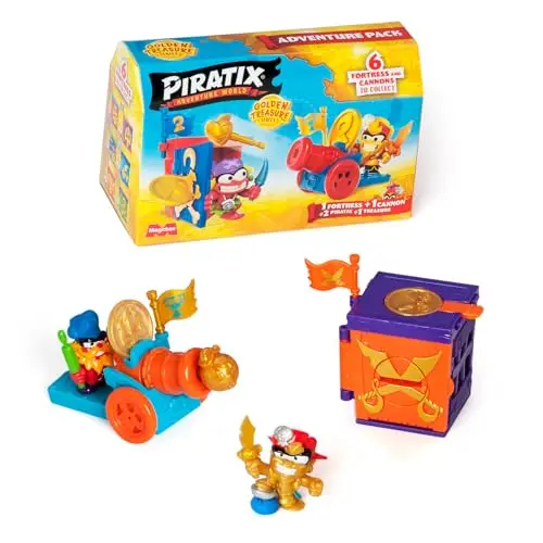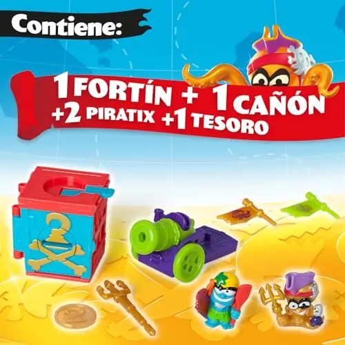 - producto 2: 6 ADVENTURE PACKS PARA COLECCIONAR – Vive tu aventura Piratix en Shark Island con este Adventure Pack. Junto con un fortin sorpresa, un tesoro exclusivo y 2 Piratix sorpresa. Ademas, contiene un canon y una bala exclusivas de este pack para deshacerte de tus rivales. Hay 6 canones para coleccionar y 6 balas doradas diferentes, con multiples formas de jugar y diferentes problemas que resolver, !para que la diversion no tenga fin!