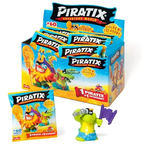 - producto 1: + 60 PERSONAJES PARA COLECCIONAR – !Ahoy, grumete! Unete a la tripulacion pirata mas temible y divertida de todos los mares: !los Piratix! Mas de 60 personajes para coleccionar en la primera serie Golden Treasure, incluidos los capitanes dorados y el ultra-raro Golden Beard, el unico que viene con un tesoro dorado con efecto metalizado. Vive tu primera aventura en Shark Island !y hazte con todo el tesoro Piratix!
