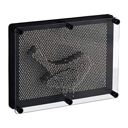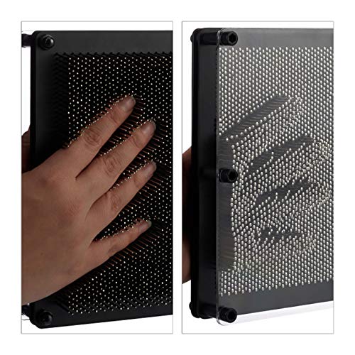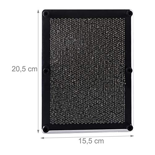 Relaxdays Tablero Pin Art, Escultura Clavos 3D, 20×15 cm, Juego Pinchitos, Molde Clavos Decorativo, Negro/Plateado