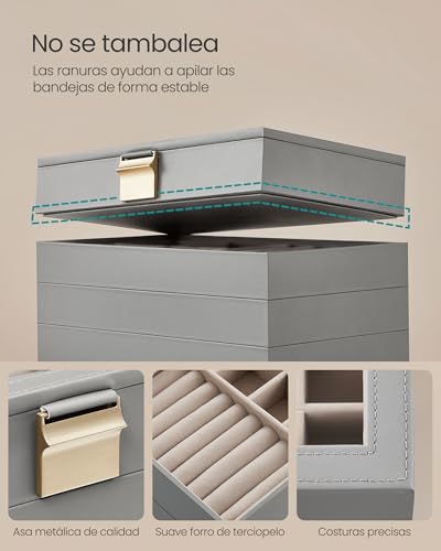 - [Detalles ingeniosos] La tapa transparente aporta elegancia y facilita la localizaci?n de las joyas. Las protege del polvo. Gracias a sus ranuras, las bandejas pueden apilarse de forma estable y compacta, evitando que se tambaleen