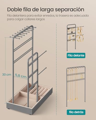 - [Doble zona, gran espacio] 2 partes detr?s y delante, con un espacio de 5,8 cm que las hace independientes entre s?, evitando que se enreden collares, pulseras, etc.; utilizando el espacio vertical para ordenar y ahorrar espacio de mesa