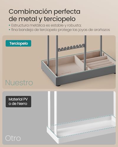 - [Combinaci?n perfecta de metal y terciopelo] La robusta marco met?lico y la base est?n atornilladas para mayor estabilidad y robustez, no secude incluso con muchas joyas; la base est? envuelta en terciopelo para proteger tus preciosas joyas