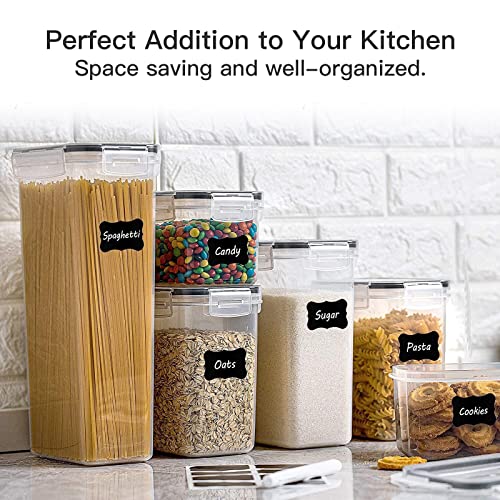 Withosent Juego de 20 tarros herméticos para cocina con tapa de plástico, recipientes de almacenamiento para espaguetis, harina, cereales, cereales (2,8 L, 2 L, 1,4 L, 0,8 L, 0,52 L)